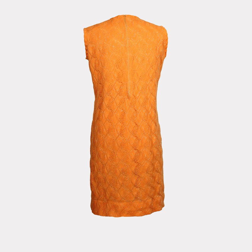 Vestito tubino mini anni ’70 in Cashmilon, filato acrilico (100% acrylic fibre) con struttura knit a rete fine e finitura brushed per simulare la mano del cashmere, grammatura media 250-350 g/m² e loft termico stabile. Fodera interna 100% stretch nylon garantisce elasticità (recupero >90% dopo stiramento) e comfort cutaneo, con silhouette aderente a crew neck per vestibilità bodycon su taglie S-M (busto stimato 84-90 cm).