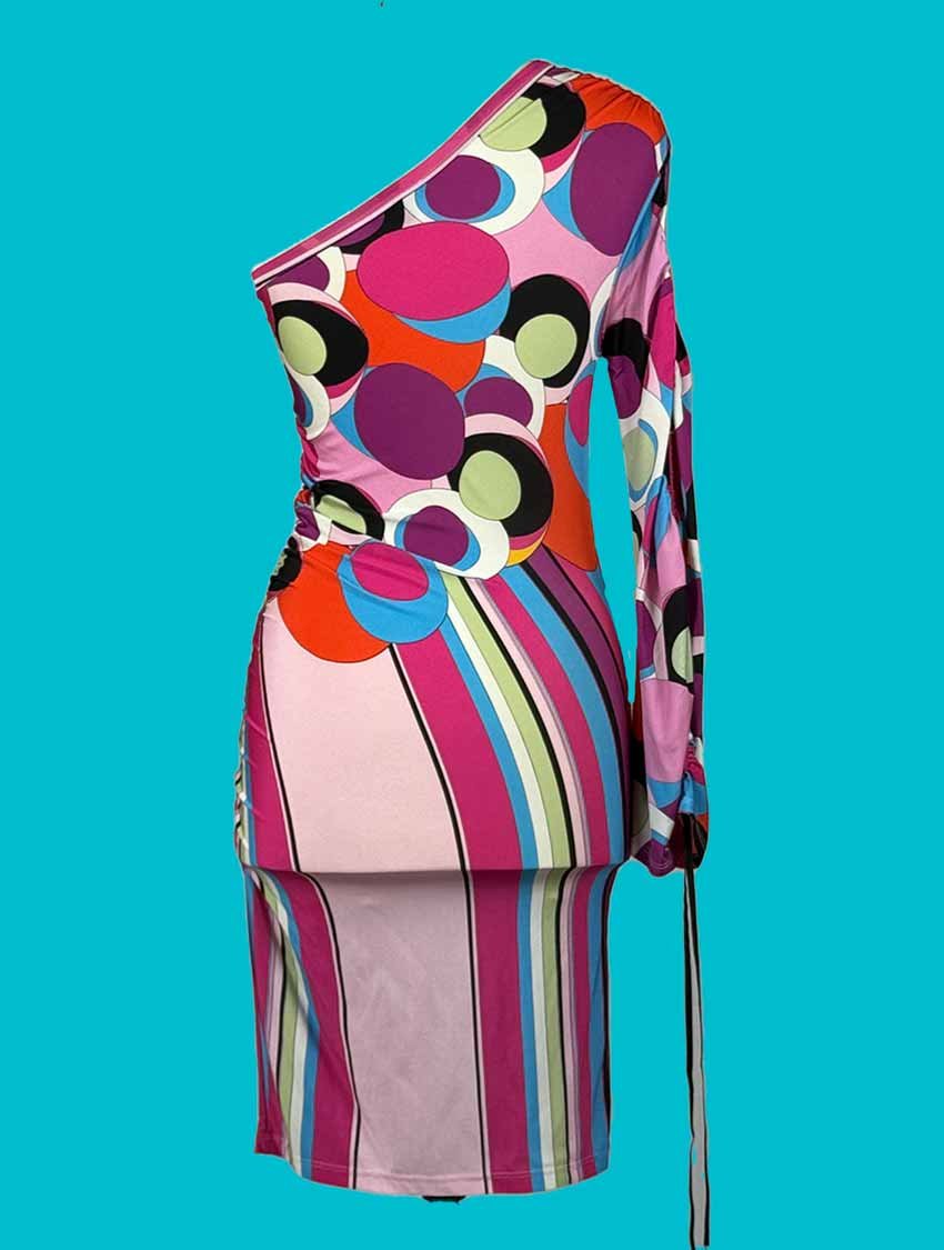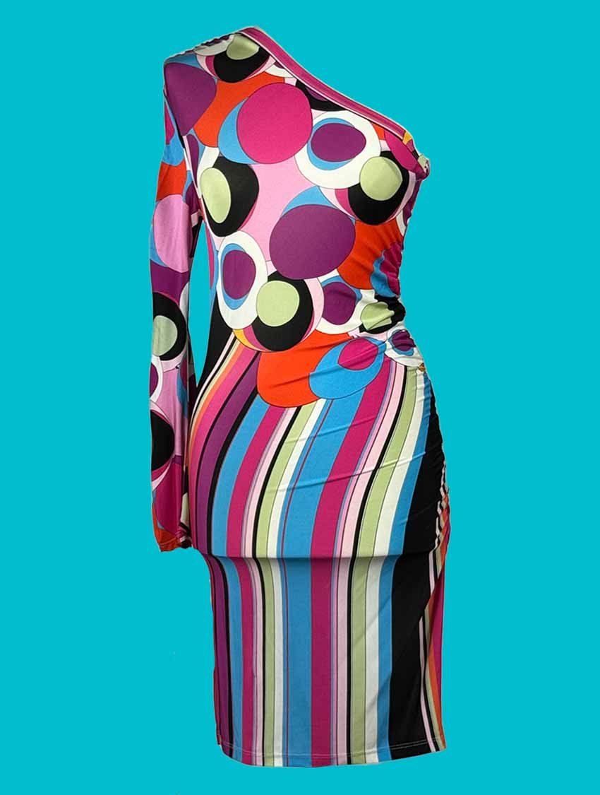 Abito monospalla Denny Rose, aderente, colorato