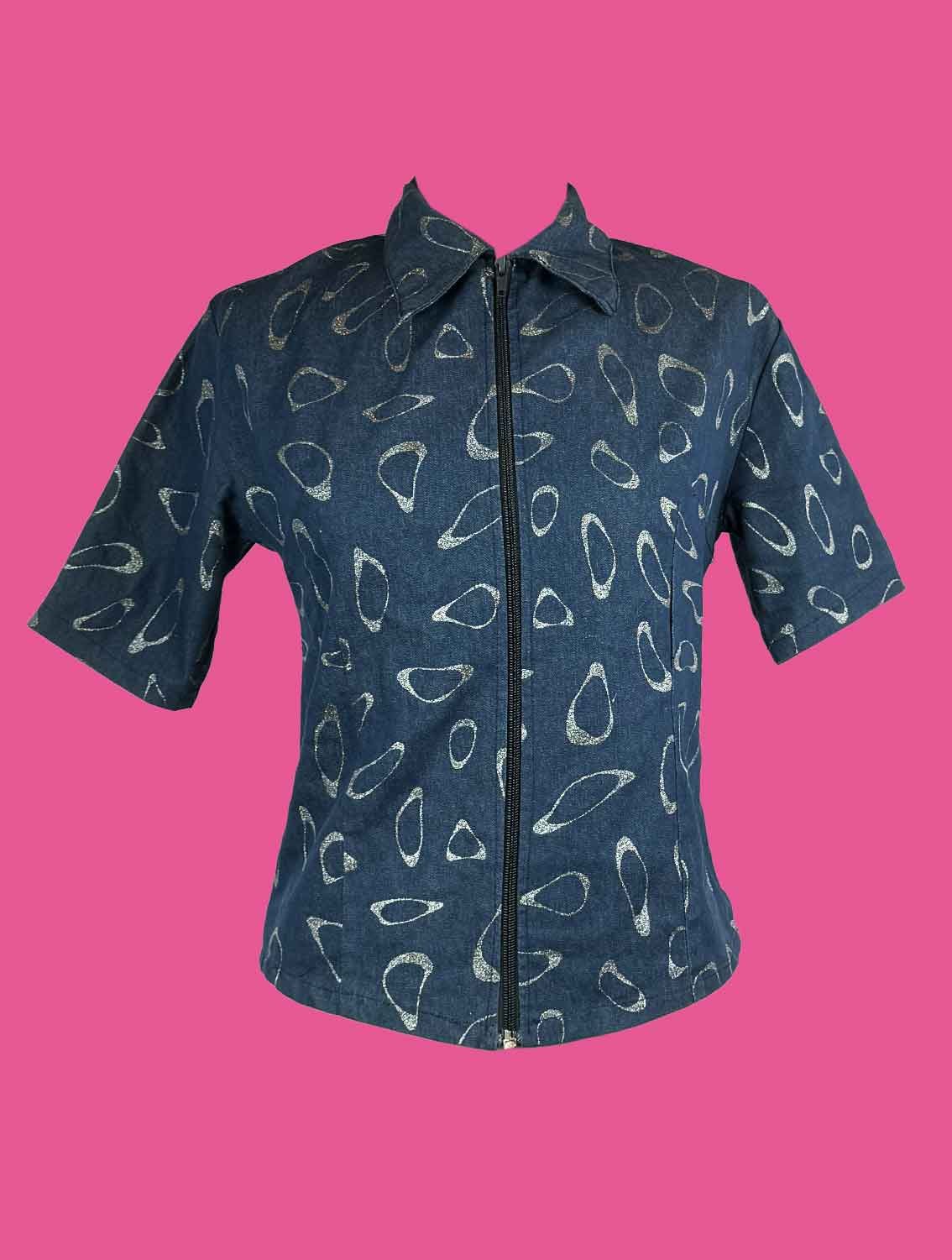 Camicia a maniche corte in denim leggero, fantasia retrò glitterata