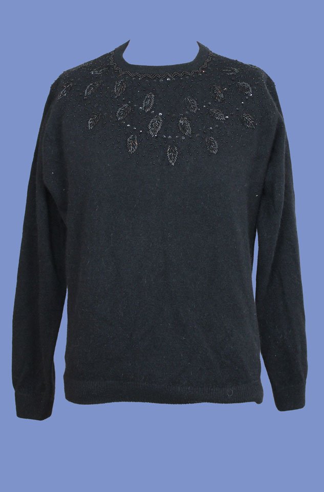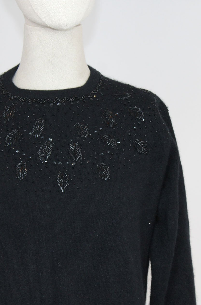 Maglione vintage foderato, ricamo perline nere