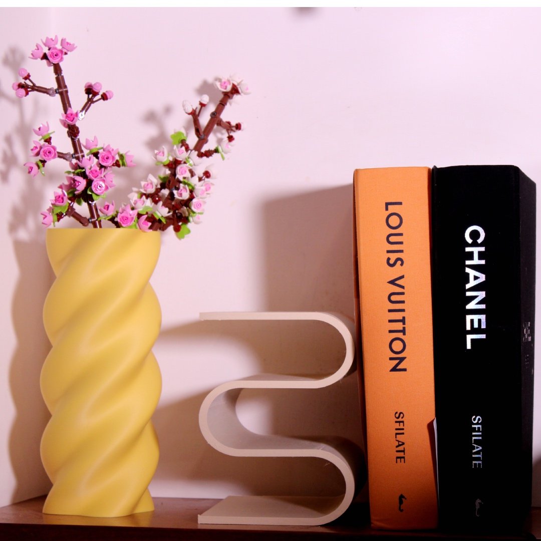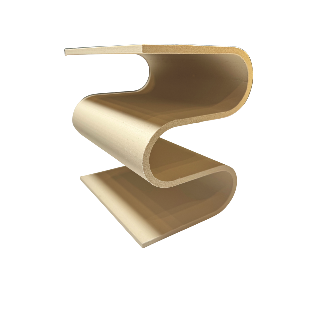 Mini mensola “S‑wave” beige sabbia stampata in 3D, ideale come appoggio singolo o modulo ripetibile; bordi arrotondati e superficie setosa.