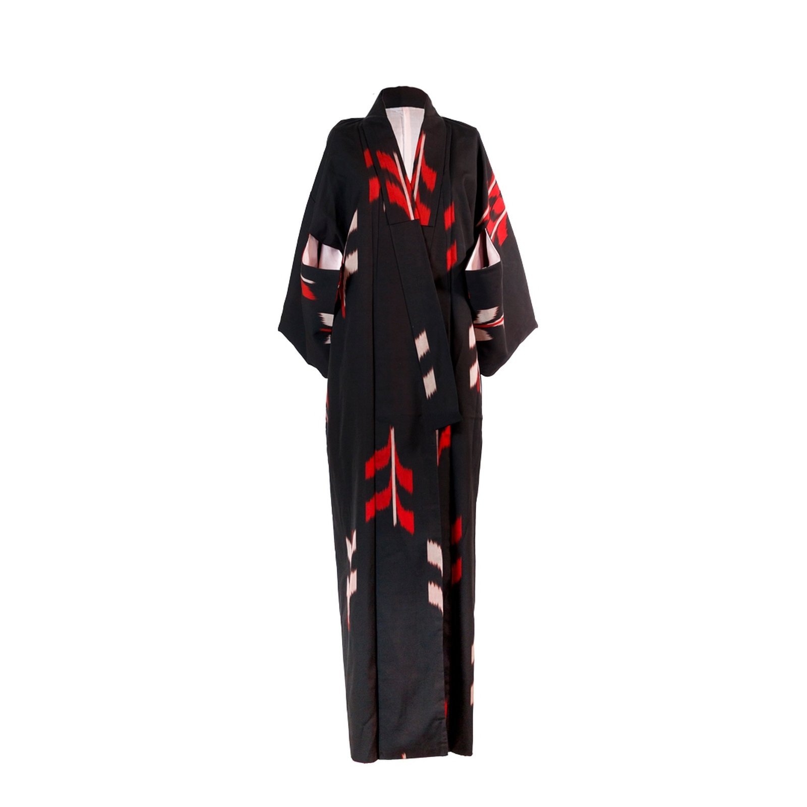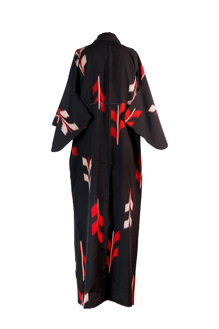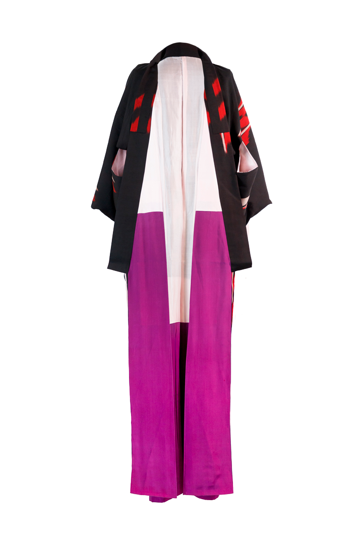 Kimono Omeshi (お召し) Rosso, Rosa e nero. Nei kimono tradizionali le taglie non esistono!