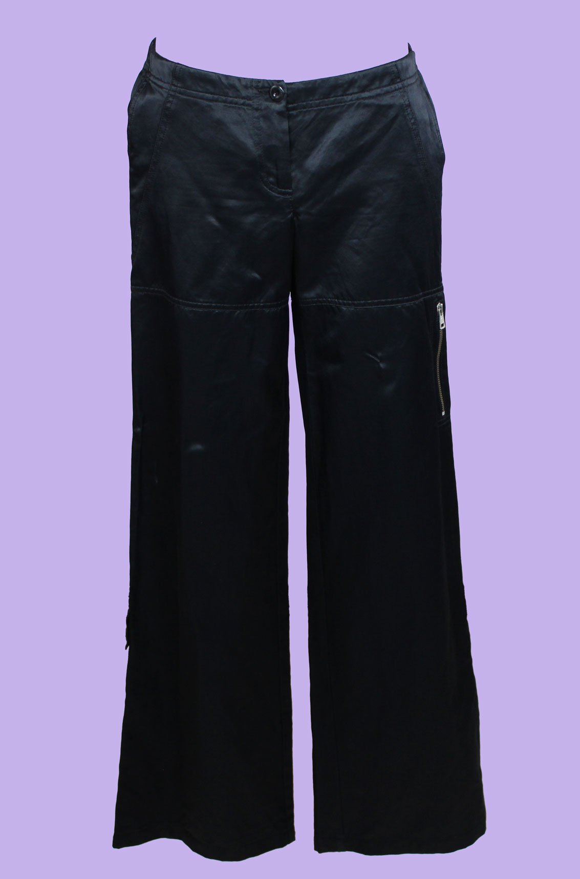Pantaloni cargo neri satin nuovi con cartellino